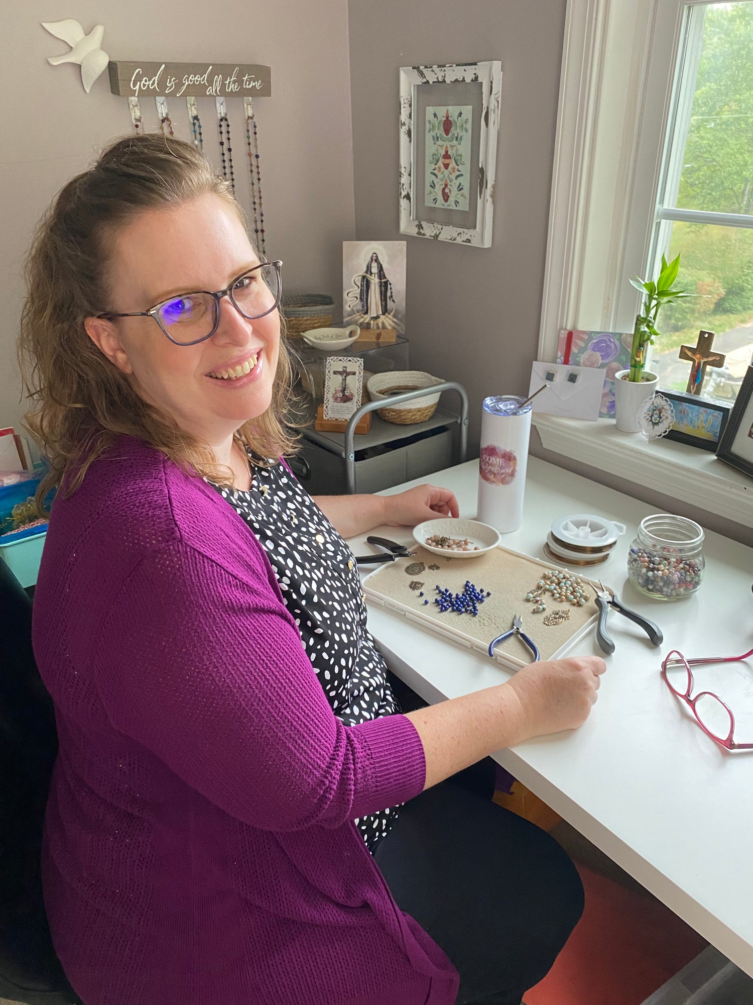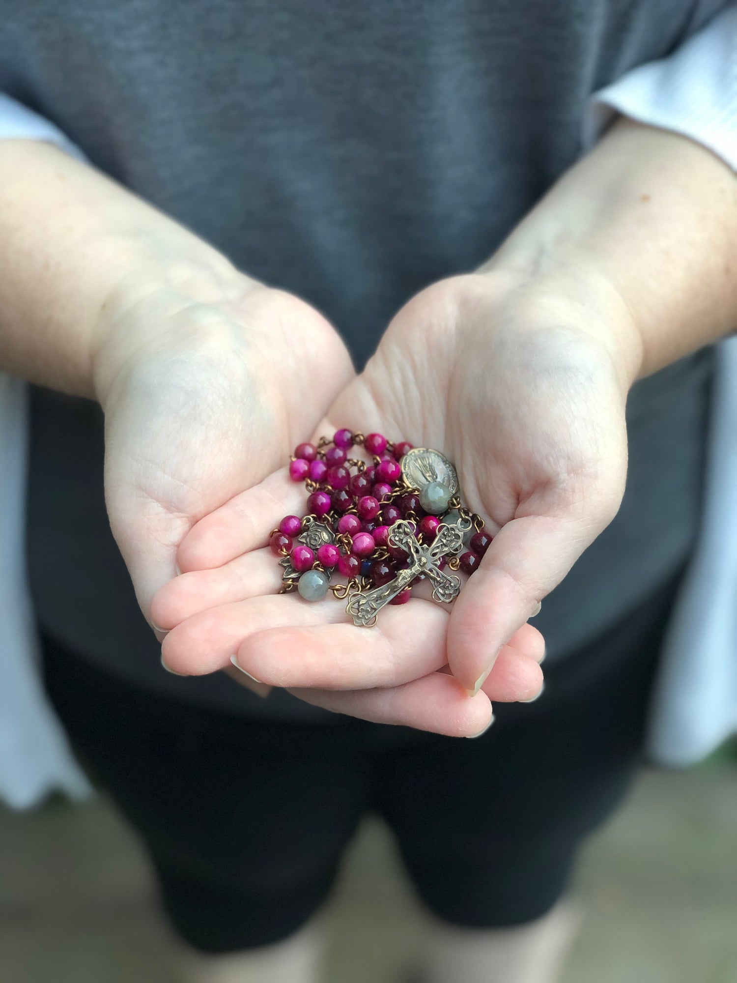 I create heirloom inspired rosaries and chaplets in the "nooks and crannies" of my day.